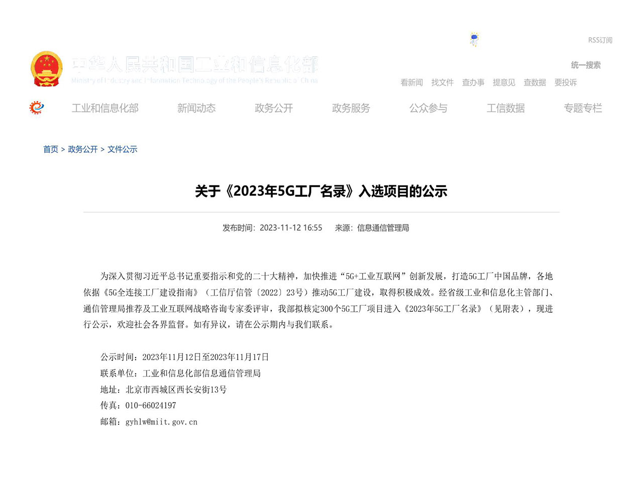 【喜訊】我司入選工信部《2023年5G工廠名錄》