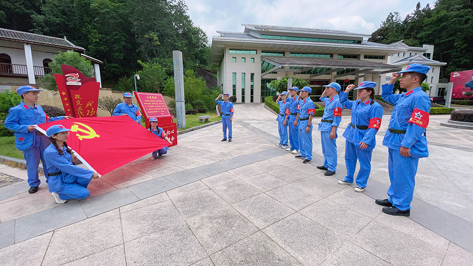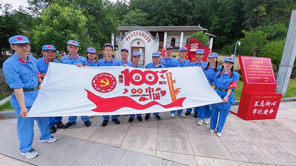 身著紅軍服、頭戴八角帽、高舉中國(guó)共產(chǎn)黨黨旗、繪制中國(guó)夢(mèng)藍(lán)圖、重溫入黨誓詞、爭(zhēng)做紅軍人……6月27日上午,龍合智能黨支部奔赴龍巖市永定區(qū)開(kāi)啟“黨建百年,龍合獻(xiàn)禮”系列活動(dòng)之重走紅色交通線。黨員們先后參觀張鼎丞故居與伯公凹等紅色革命根據(jù)地,認(rèn)真聆聽(tīng)“一段殘墻”“三塊銀元”“一盞燈”“七位烈士”等紅色傳奇故事,在緬懷先烈、接受紅色思想洗禮的同時(shí),感知革命先輩的無(wú)私情懷,在富有濃厚革命氣息的紅色文化展廳里,重溫革命歷史、探尋紅色初心。