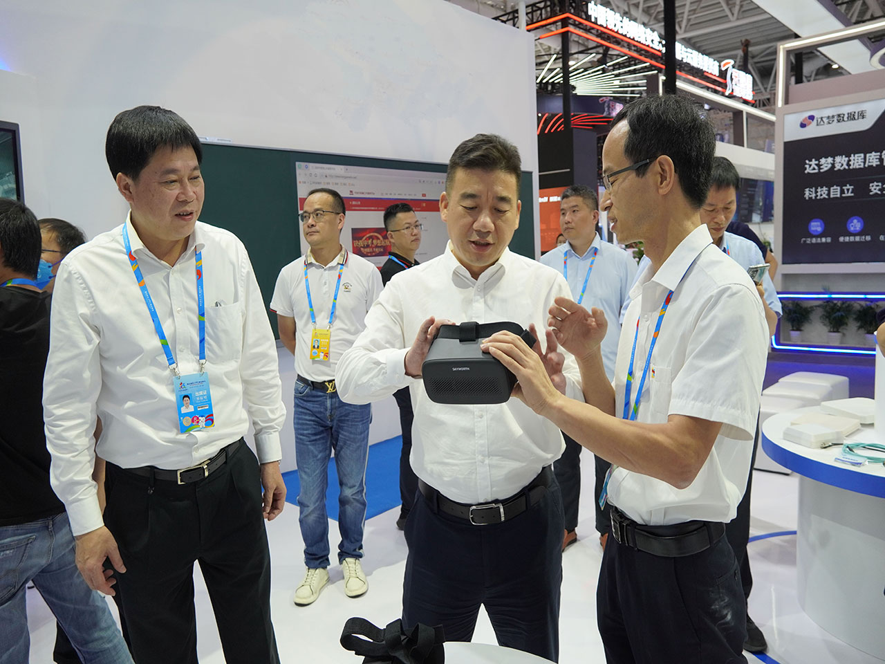 峰會(huì)期間,龍巖市人民政府黨組成員、副市長(zhǎng)簡(jiǎn)洪坤、龍巖市大數(shù)據(jù)和政務(wù)服務(wù)管理局局長(zhǎng)陳俊明親臨龍合智能公司展位體驗(yàn)與指導(dǎo)。