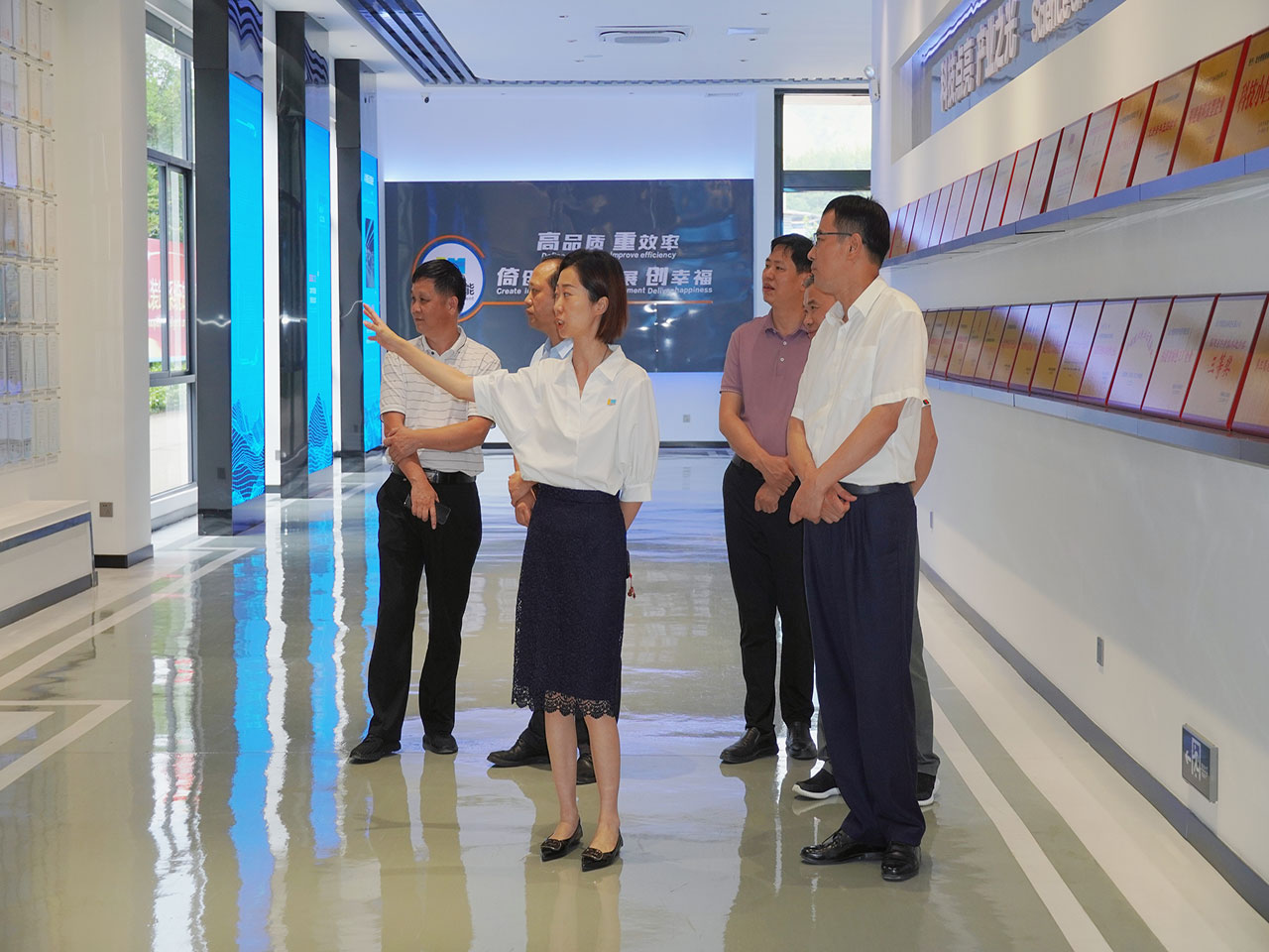 調(diào)研組一行深入龍合智能數(shù)字化展廳,認(rèn)真聽取楊靜董事長關(guān)于企業(yè)發(fā)展歷程、重點(diǎn)項(xiàng)目規(guī)劃、自主科技創(chuàng)新等情況匯報(bào),詳細(xì)了解我司5G+數(shù)字化發(fā)展建設(shè)、公司黨建文化工作、專利申報(bào)等開展情況及取得的成績,并對(duì)龍合智能創(chuàng)新能力及研發(fā)精神等給予了充分的肯定。