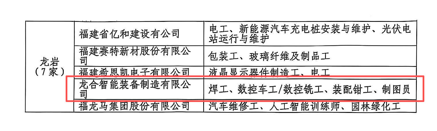 近日,福建省人力資源和社會(huì)保障廳正式公布2025年省級(jí)高技能人才培訓(xùn)基地備案名單,龍合智能憑借獨(dú)具特色的人才培養(yǎng)模式,成功入選2025年省級(jí)產(chǎn)業(yè)鏈頭部企業(yè)實(shí)訓(xùn)基地,標(biāo)志著公司在高技能人才培養(yǎng)方面獲得了省級(jí)認(rèn)可。