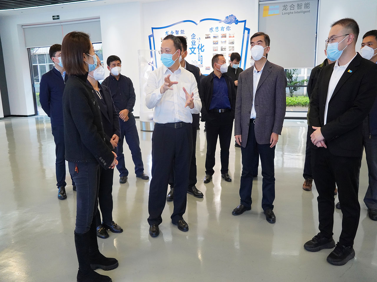 王煥清副市長一行參觀了龍合智能數(shù)字化黨建文化展廳,聽取楊靜董事長就企業(yè)發(fā)展歷程、技改投入、人才育引等情況匯報(bào),詳細(xì)了解了我司產(chǎn)品應(yīng)用場景及戰(zhàn)略規(guī)劃,并給予了充分的肯定和評價(jià)。