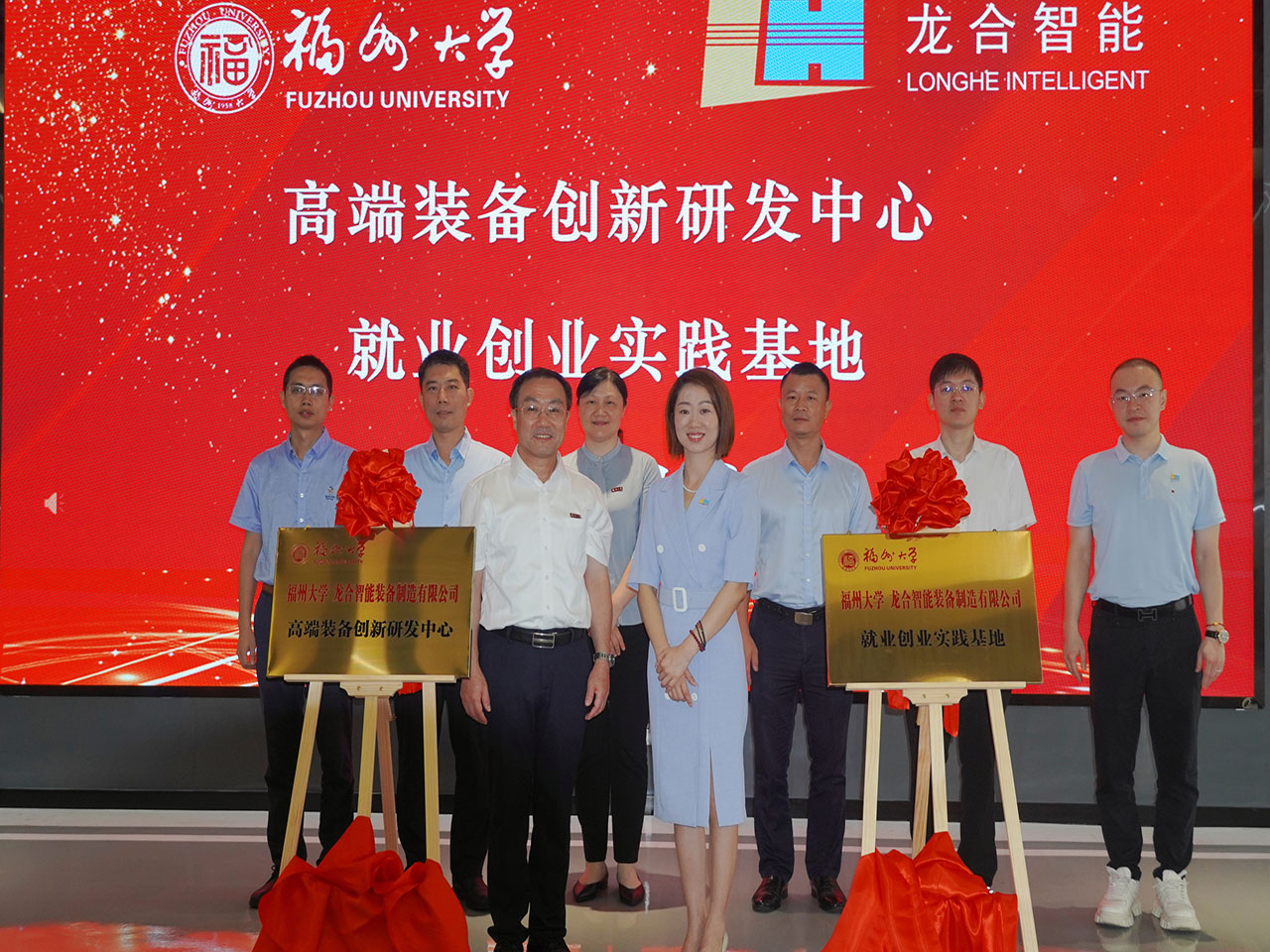 福州大學副校長林鍵、龍合智能董事長楊靜在參會人員的共同見證下為“高端裝備創(chuàng)新研發(fā)中心、就業(yè)創(chuàng)業(yè)實踐基地”揭牌,隨后,雙方基于人工智能、學科研究、校企合作、實習實踐、人才培養(yǎng)等方面展開研討,共同探討產(chǎn)教融合發(fā)展新模式。