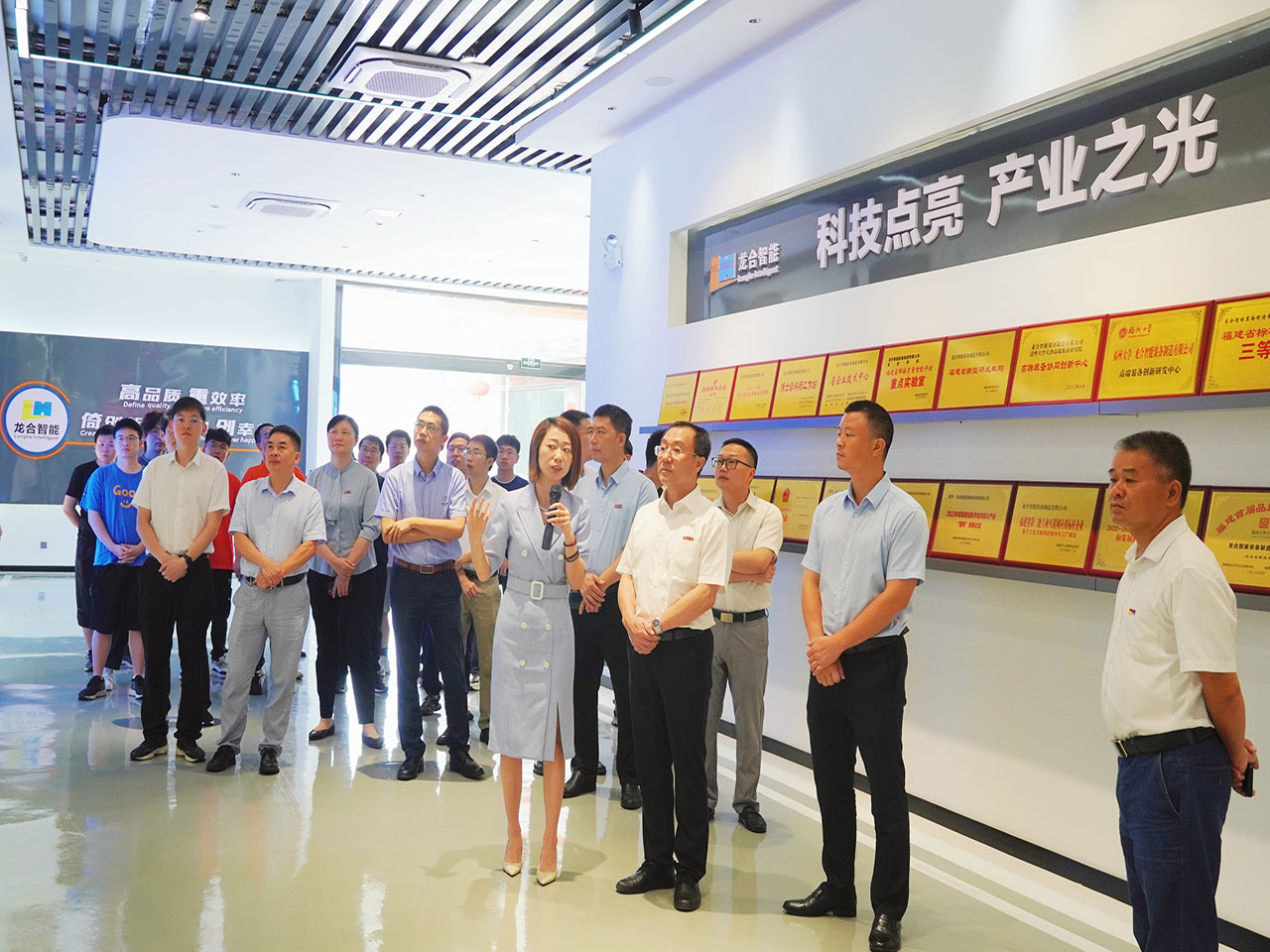 活動過程中,福州大學副校長林鍵等一行參觀了龍合智能數(shù)字化展廳及生產(chǎn)車間,詳細了解我司生產(chǎn)經(jīng)營、科研攻關(guān)、產(chǎn)業(yè)布局以及5G+智慧工廠項目建設(shè)等情況。