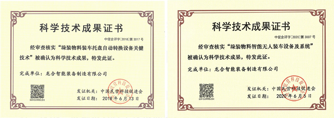 龍合智能的創(chuàng)新設計通過國家科技部授權的權威機構認證為科學技術成果,已擁有眾多知識產權技術專利,共計獲得國家專利269項(其中發(fā)明專利35項),獲得軟件著作權57項,知識產權自主可控。實現了無人化、自動化、信息化和智能化裝卸作業(yè)的行業(yè)零的突破。